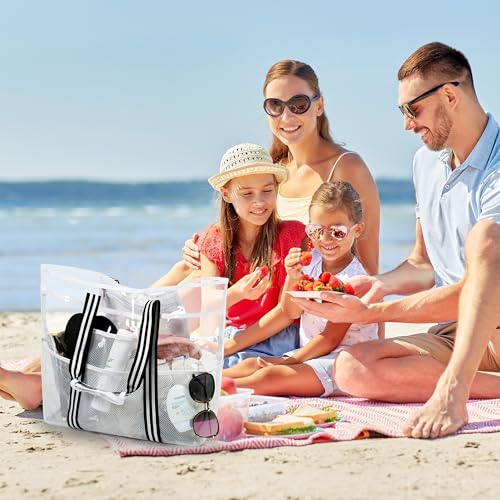 Clear Tote for Women, Extra Large Beach Bag, Stadium Waterproof PVC Mesh Bag for Travel, Pool, Cruise, Work, Gym, Vacation 4