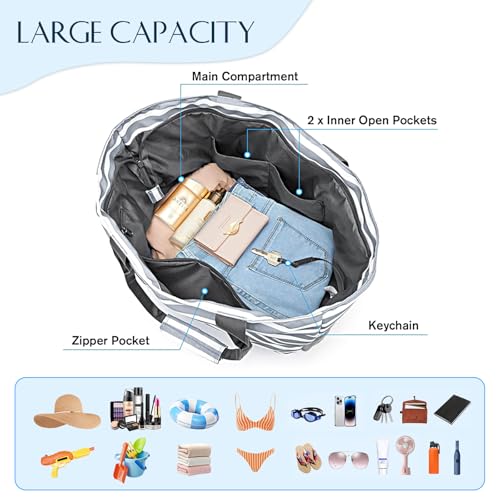• 【Waterproof & Sandproof Beach Bag】:Beach tote bags is made of durable, high-quality fabric that is both water and tear resistant, providing protection from sand and water. You can enjoy a day on the beach without worrying about your belongings getting wet or damaged.