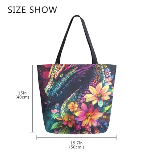 HOT ! Extra Large Shoulder Tote Bag for Beach Travel Weekender Gym Colorful Dragon Flowers Reusable Grocery Canvas Shopping Bag