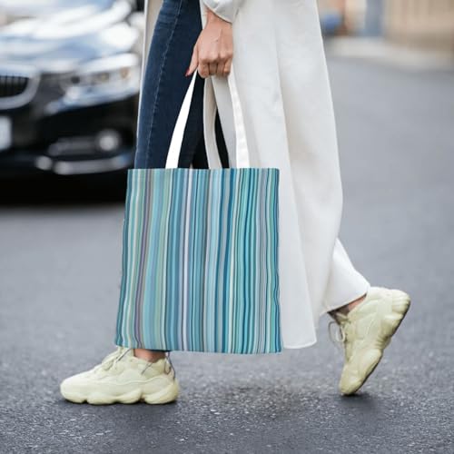 Vertical Stripes Print Polyester Canvas Tote Bag, Shopping Bag With Reinforced Handles, Reusable 7