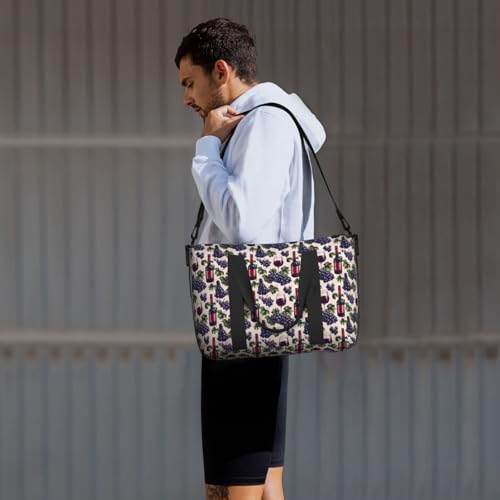 Travel Duffle Bags For Women Men - Grape Wine Print Personal Item Weekender Overnight Gym Carry On Airport Tote Bag With Strap For Yoga, Travel, Business Trips 7