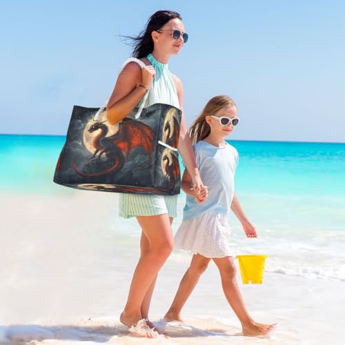 Large Beach Bags Totes Canvas Tote Shoulder Bag Red Dragon Water Resistant Bags for Gym Travel Daily 2