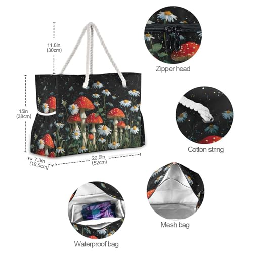 susiyo Mushrooms Beach Bags for Women Large Travel Tote Bag Waterproof Sandproof Lightweight Swim Pool Bag for Family Outdoor 6