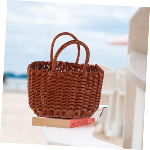 HOT ! Portable Woven Tote Bag for Women Lightweight Shower and Picnic Basket Stylish Plastic Handbag for Beach and Outdoor Use Ample Storage and Design