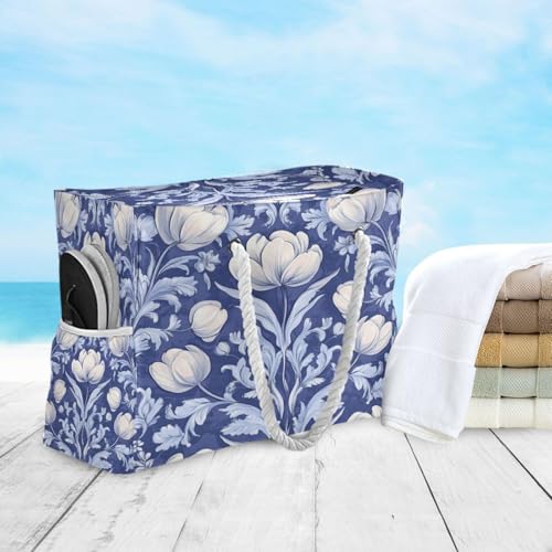 More information about Floral Pattern with Blooming Tulips (1) Beach Bag & Travel Tote Bag Large Sandproof with Zipper Closure, Wet Pouch for Swim Gym Travel, Lightweight Foldable Outdoor Bag