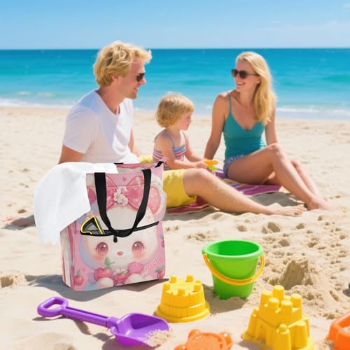 HOT ! Decorative Book Tote Bag for Boys Girls Women, Cute Cartoon Cherry Bear Simple Sturdy Reusable Shopping Bag with Zipper for School Shopping Beach Rainbow para libros de