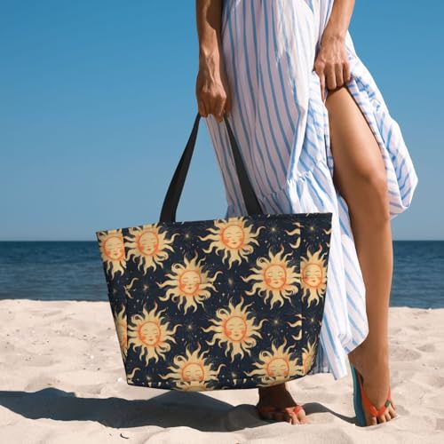 Large Beach Bags for Women Sandproof - Cute Sun Navy Blue Print Summer Travel Work Tote Bags with Zipper 1