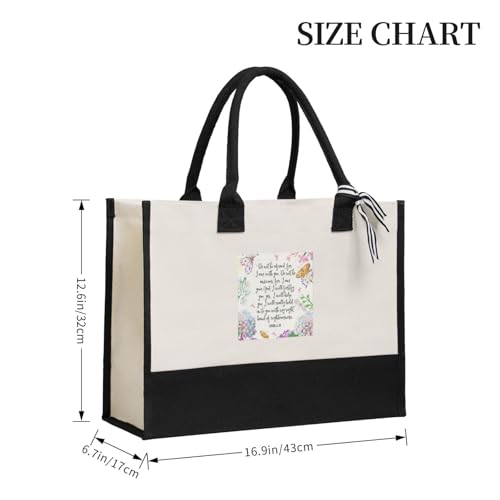 More information about Isaiah 41 10 Flowers And Butterflies Durable Cotton Blend Canvas Tote Bag, Spacious Reusable Gift Bag for Travel, Beach & Shopping