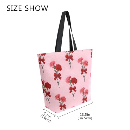 HOT ! Extra Large Shoulder Tote Bag for Beach Travel Weekender Gym Carnation Pattern Red Pink Flower Reusable Grocery Canvas Shopping Bag