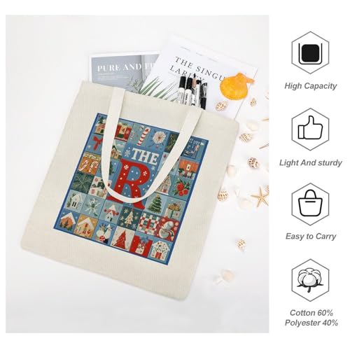 Personalize Name Santa Claus Christmas Nursery Women Canvas Tote Bag for Shopping Gym Travel Beach Bag 7