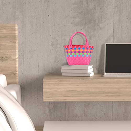 Mini Woven Basket Set Colorful Plastic Storage Baskets for Snacks Food Household Supplies Portable Tote for Beach or Picnic for Women 7