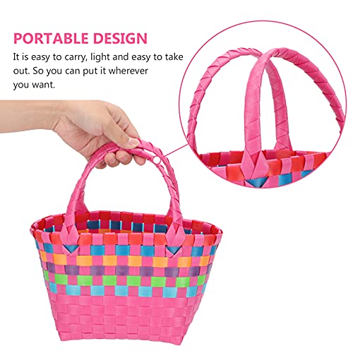 Mini Woven Basket Set Colorful Plastic Storage Baskets for Snacks Food Household Supplies Portable Tote for Beach or Picnic for Women 5