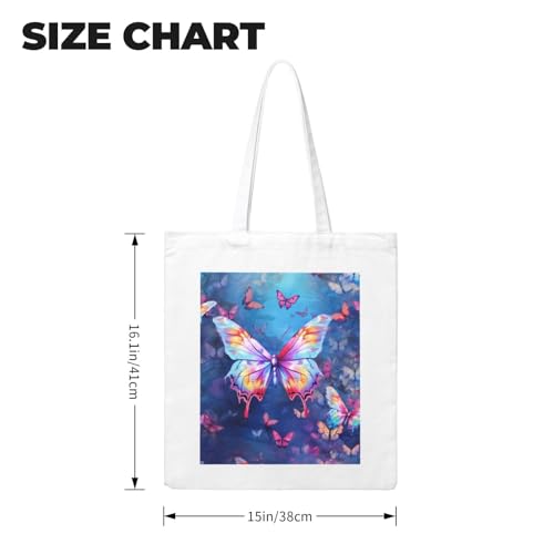 (Colorful Butterfly) Reusable Canvas Tote Bag For Women Shoulder Bag For Shopping Grocery Beach Travel Work 1
