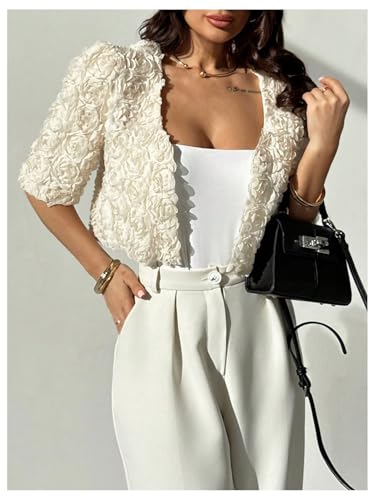 GORGLITTER Women's 3D Flower Short Sleeve Jacket Open Front Party Cropped Cardigan Trendy 2025 3