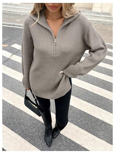 More information about Verdusa Women's Quarter Zip Pullover Sweaters Streetwear Split Ribbed Knit Tops