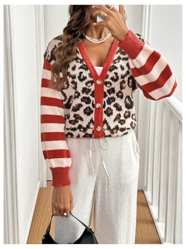 Floerns Women's Leopard Striped Print Long Sleeve Cardigan Button V Neck Sweater Outerwear 1