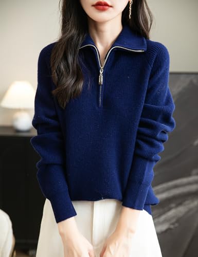 Women's 100% Merino Wool Sweater 2025 Fall Winter 1/4 Zip Pullover Casual Long Sleeve Knit Sweater Tops 5