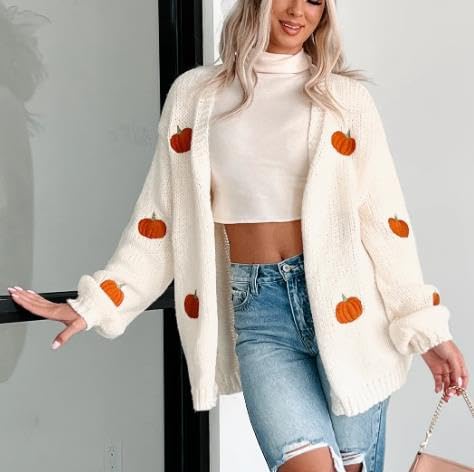• Style: Pumpkin embroidered sweater cardigan, pumpkin patch, contrast, long jumper tops knitwear, styled well with tee shirts, tank top, dress, jeans, shorts, skirts, sneakers or boots
