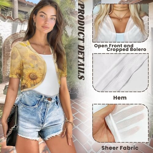 • Features: This Bolero Shrug Is Short Design, Revealing the Waistline, Elongating the Proportion of the Body, Mesh Texture Is Light and Breathable, Short Sleeve Design, Covering the Arms, Shaping a More Charming Figure, Slightly See-Through, But Not Too Exposed, The Overall Style Is on the Sexy Side, Suitable for Spring and Summer, The Whole Dress Is Both Breathable and Atmospheric