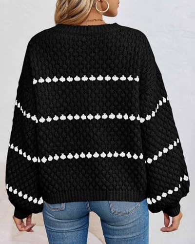 • Feature: Trendy fall sweaters features with soft material, plaid texture, casual loose, lantern sleeve, color block dotted stripes, oversized style, round neck, long sleeve.
