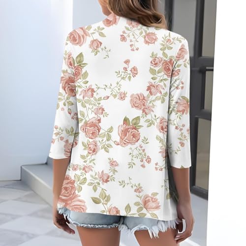 Summer Cardigans for Women Lightweight Ruched 3/4 Sleeve Open Front Cardigan Casual Cover up Shrugs for Dress 4