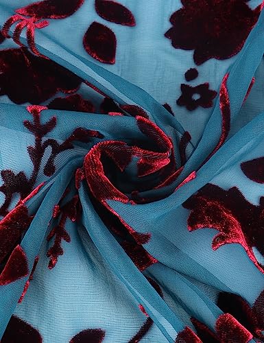 WeHello Women's Burnout Velvet Kimono Long Cardigan Cover Up with Tassel Teal/Red 5