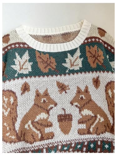 WDIRARA Women's Cute Pattern Long Sleeve Sweater Crew Neck Pullover Knitted Tops 6