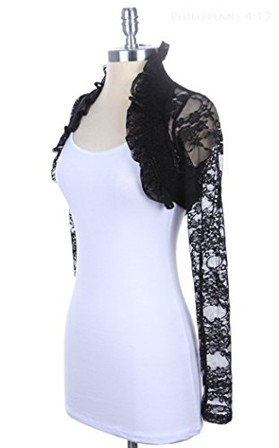 Junior`s Long Sleeve Lace Smoked Shrug Bolero, Cropped Jacket Short Cardigan 3