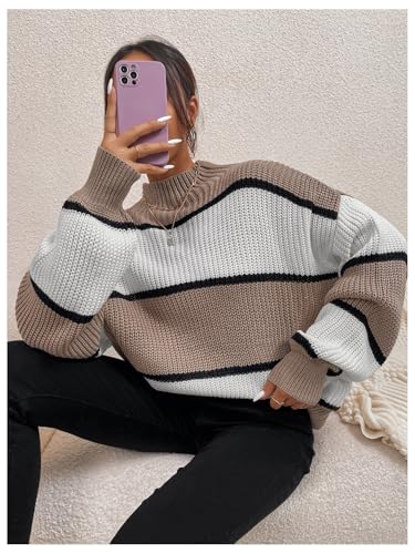 • Feature: Colorblock, Striped Print, Mock Neck, Lantern Sleeve, Long Sleeve, Drop Shoulder, Loose Fit Sweater Tops for Women
