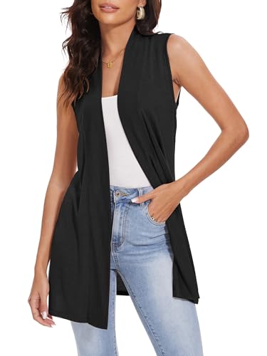 • 【Features】Solid color, sleeveless, open front, draped duster. This basic essential knit sleeveless cardigan for women is a must-have for every fashion women to show your layering, feminine silhouett.