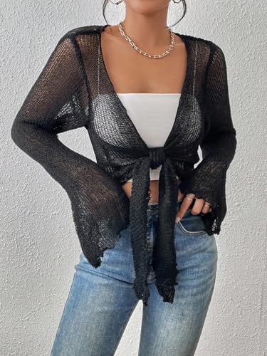 Floerns Women's Summer Bell Long Sleeve Tie Front Knitted Lightweight Cardigan Sweater 1