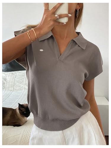 Verdusa Women's Dolman Short Sleeve Sweater Collar V Neck Lightweight Casual Pullovers 1