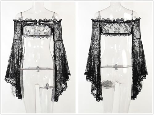 More information about Goth Bolero Shrug Women Lace Sheer Mesh Gothic Flare Sleeve Emo