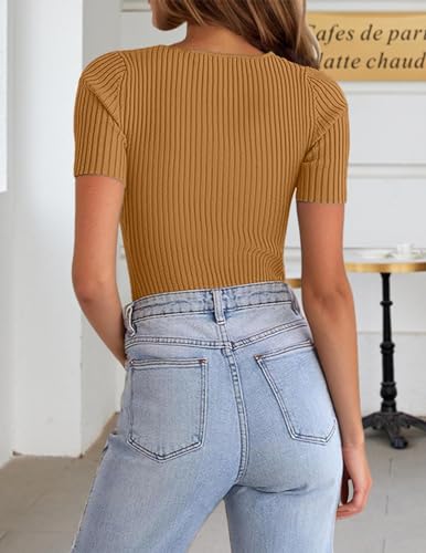 Zeagoo Womens Short Sleeve T Shirts 2024 Summer Casual Knit Slim Fit Trendy Basic Cute Sweater Tops 6