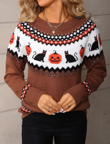 • Kinghua womens sweater spring winter fall halloween casual long sleeve cute crewneck trendy elegant loose fit dressy pullover knitted vintage holiday sweater tops