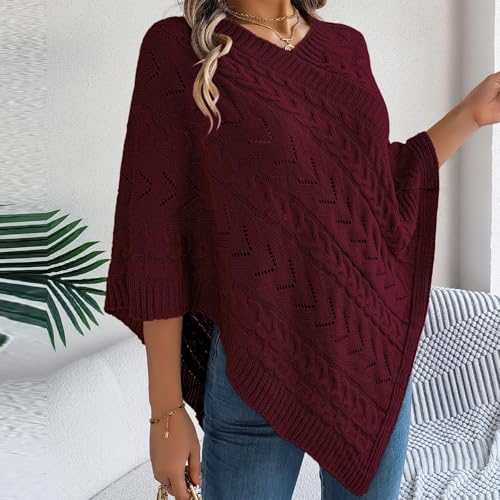 HOT ! Poncho Cape Shawl Wrap Cardigan for Women Cable Knit Crochet Shawl Wraps Lightweight Pullover Sweater Jumper Top