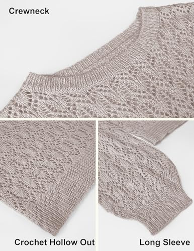 Womens Cute Fluffy Crewneck Crochet Hollow Out Long Sleeve Pullover Sweater Lightweight Sweater Spring 2025 6