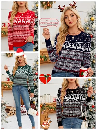 Women's Christmas Sweater,Crew Neck Long Sleeve Soft Warm Winter Snowflake Reindeer Xmas Pullover Tops 4