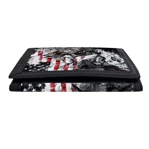COEQINE Boys Wallets For Kids 9-12,Wolf American Flag Themes Moneybag With Coin Pocket for Women Men Cool Birthday Gift 1
