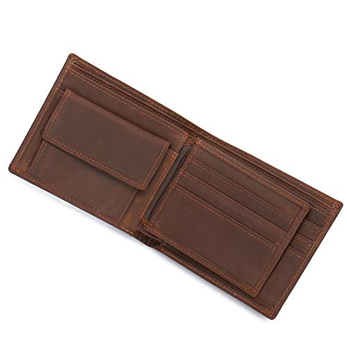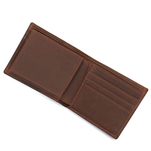 • Made of premium first layer crazy horse genuine leather (inside and out) which the quality is superb, soft-feeling and delicate, with super toughness and durability. This stylish vintage look wallet is a nice gift for you friends and family!