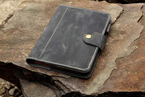 More information about Personalized vintage gray leather travel journal with pockets A5 travelers notebook travel binder organizer NBA509TB