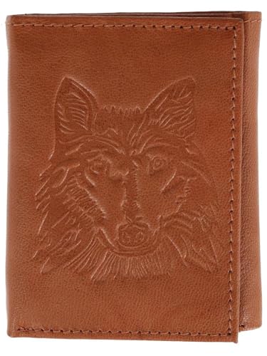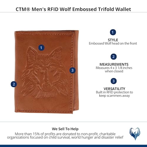 HOT ! CTM Men's RFID Wolf Embossed Trifold Wallet, Tan