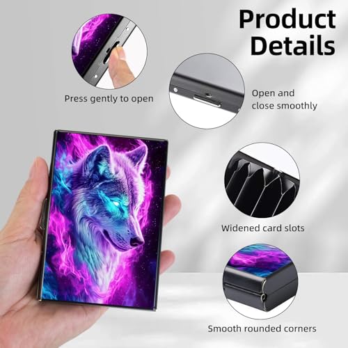 Metal Wallet, Minimalist Aluminum RFID Wallet & Credit Cards Wallets, Beautiful Wolf Slim Mini RFID Blocking Credit Card Holder for Men & Women, 6 Slots Front Pocket Card Case 7