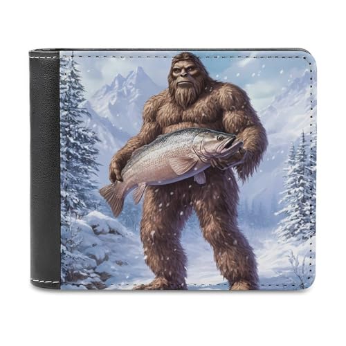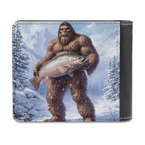 Winter Bigfoot Trout Fish Bifold Wallet PU Leather Front Pocket Slim Bussiness Card Holder Wallet Gift for Men 3