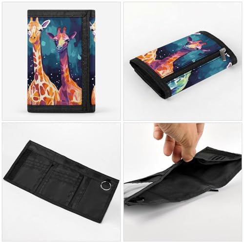 HOT ! Colorful Giraffe Fans Lovers Trifold Wallet for Men - Money Clip Slim Wallets with Multiple Card Slots Minimalist Small Front Pocket Wallet for Everyday Carry