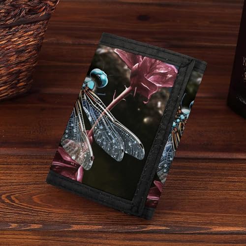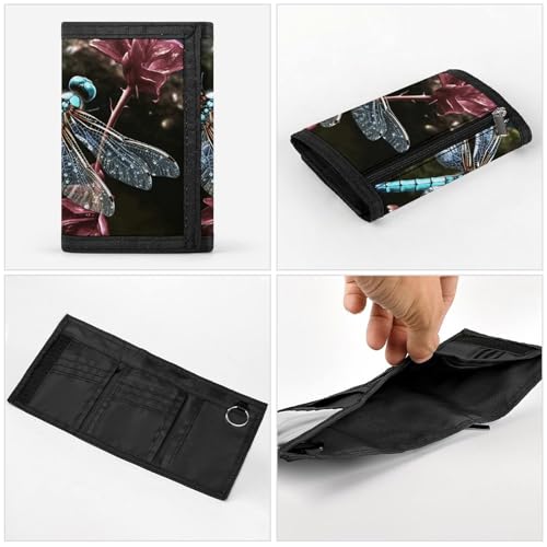 HOT ! Blue Dragonfly Trifold Wallet for Men - Money Clip Slim Wallets with Multiple Card Slots Minimalist Small Front Pocket Wallet for Everyday Carry