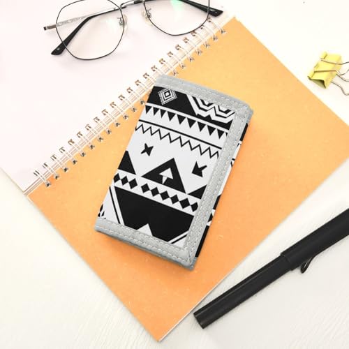 HOT ! Bolaz The Trifold Camouflage Wallets-Black White Geometric Abstract Pattern,Customized Coin Case Lightweight Card Pocket Money Organizer