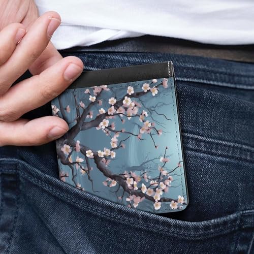 Men's Leather Wallet Bifold Wallet for Men Cherry Blossom Slim Wallet with Multiple Card Classic Passcase Mens Card Holder 7
