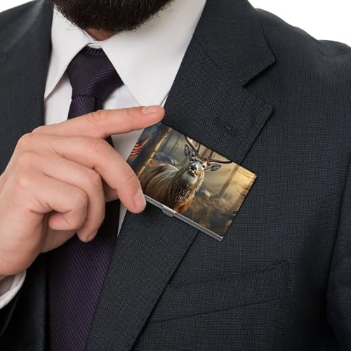 More information about Metal Business Card Holder Ultra Slim - Deer Hunting Season Professional Aluminum Alloy Card Case with Magnetic Closure, Compact ID Credit Card Organizer Wallet for Men Women