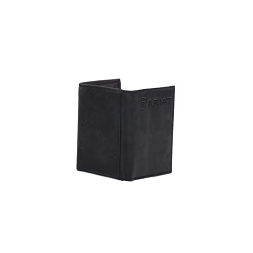 ARIAT Men's Trifold Wallet with Embossed Logo, Genuine Leather, Black 1